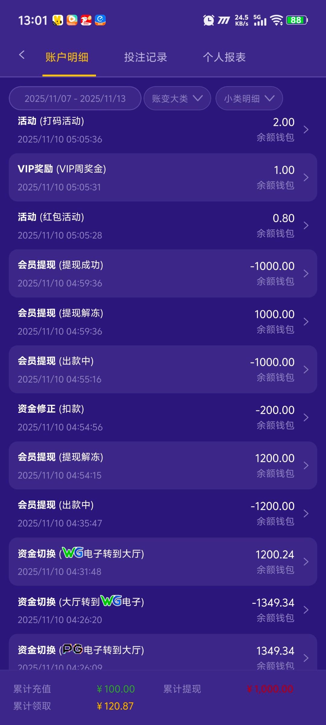 这个逼台子好像跟那个是一伙的,冲多少死多少,你就不可能赢到钱,奉劝各位别玩了,最后啥鸡毛落不下,